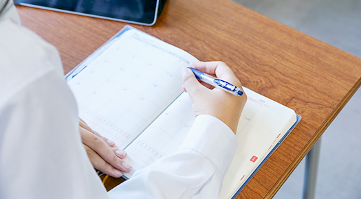 卒業後の進路として大学や専門学校への進学をめざす生徒には、必要な単位修得と並行して、受験指導をサポートします。1年次から実施する進路学習を通して、生徒一人ひとりが興味のある分野や社会への貢献などをもとに、自身の将来像を段階的に組み立て、納得のいく進路選択と進路実現を支援します。